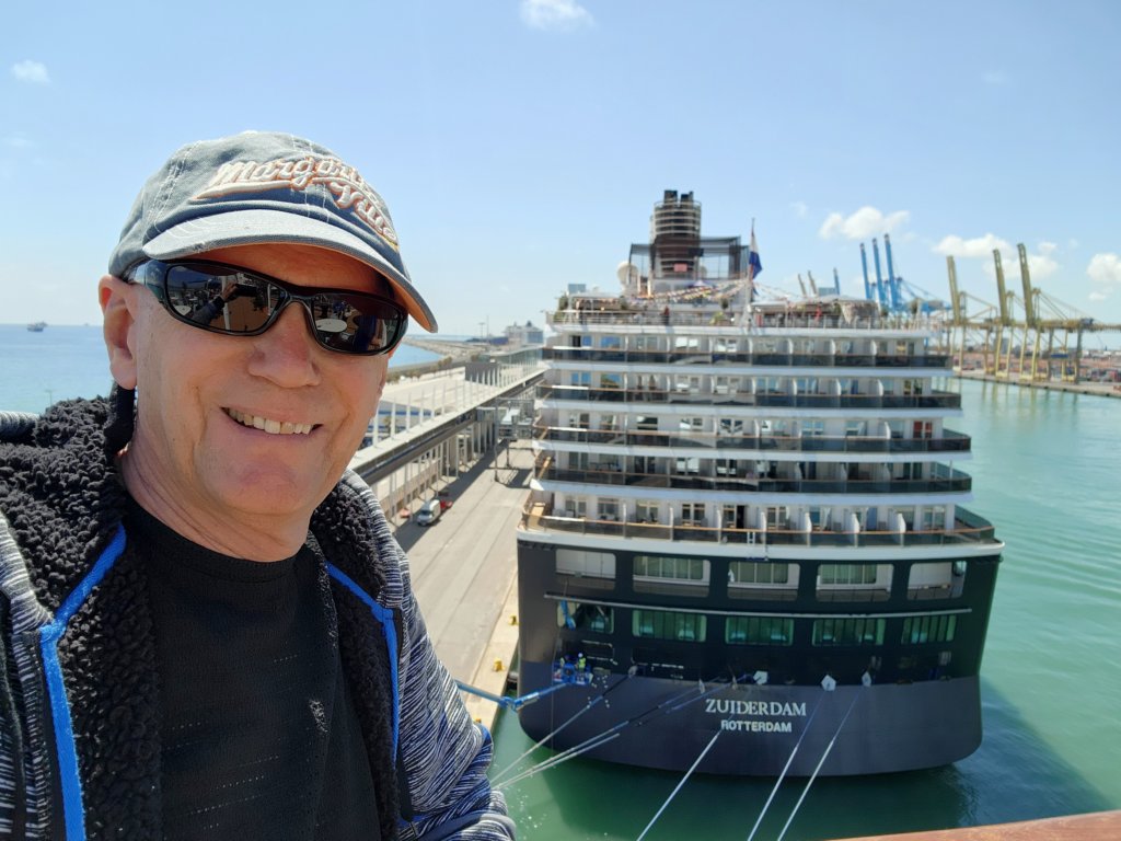 The ms Volendam and ms Zuiderdam were docked in Barcelona Spain back-to-back for a Grand Meetup Party. The guest on either ship were able to visit the other using the port’s terminal skybridge. Both ships stayed overnight in Barcelona.
